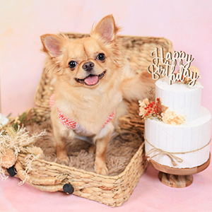 年に一度の「うちの子記念日」をフォトスタジオでお祝いできます。大切なバースデー記念にぜひ素敵な写真を残してください。